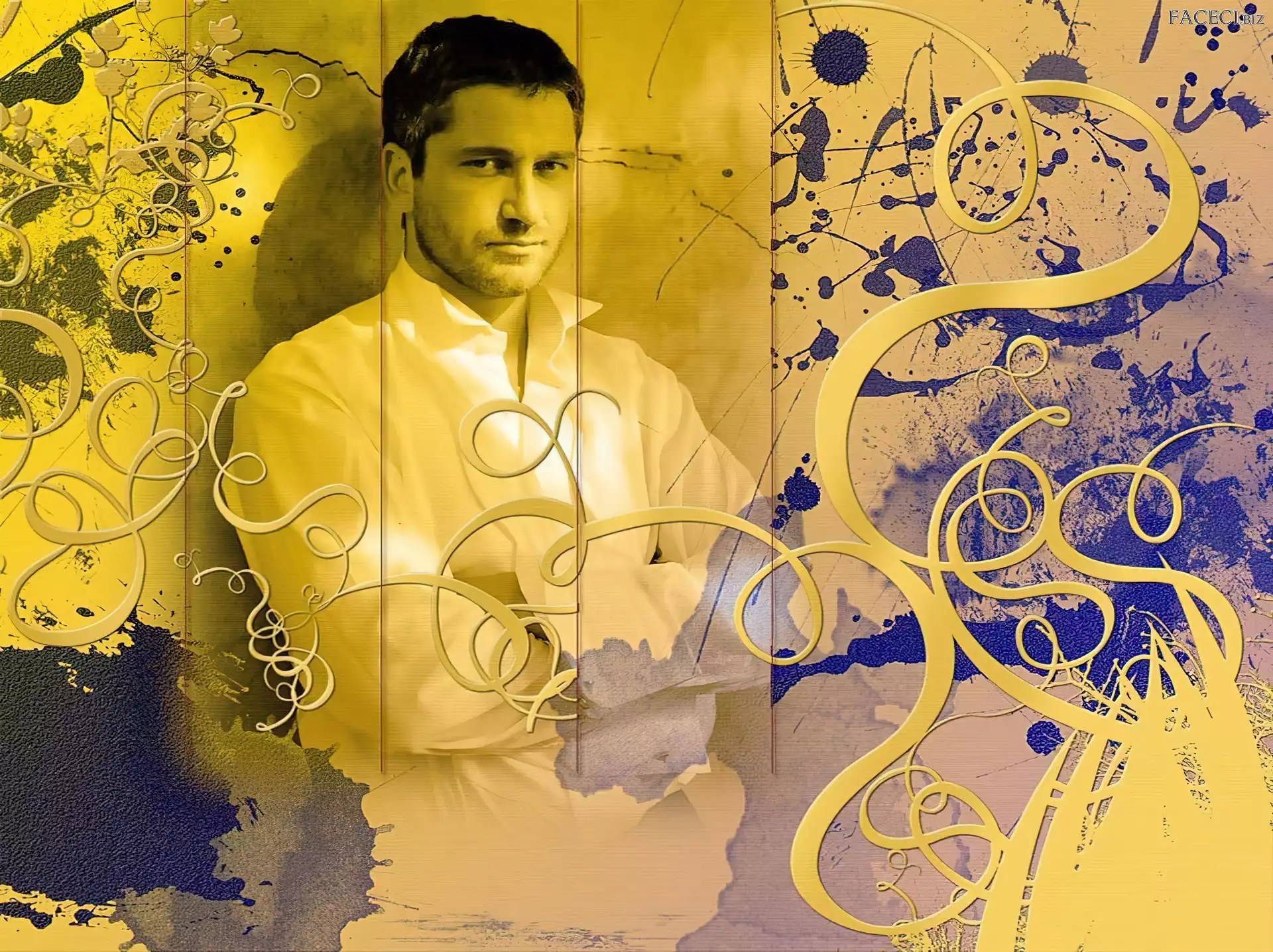 Gerard Butler, biała koszula